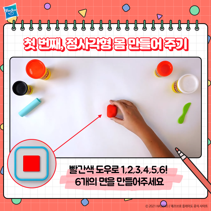 빨간색 도우로 면이 6개인 정육면체를 만들어주세요!